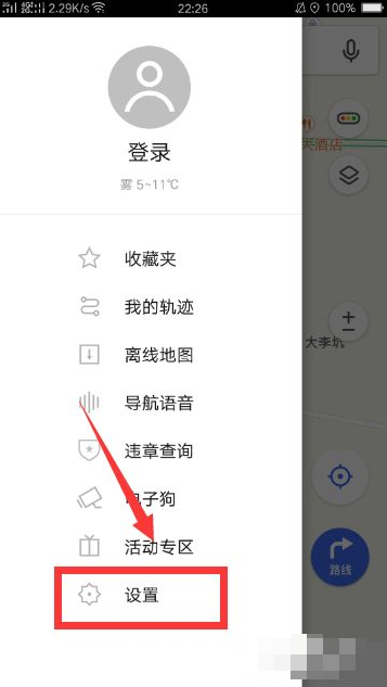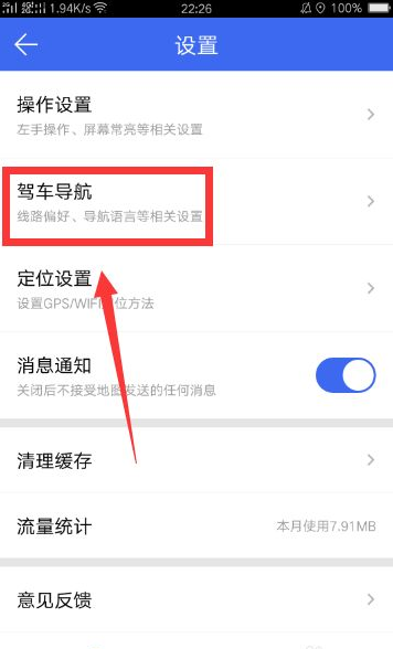 【设置】的页面,点击“驾车导航”这一项。