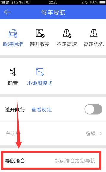 【驾车导航】的页面,点击“导航语音”这一项。