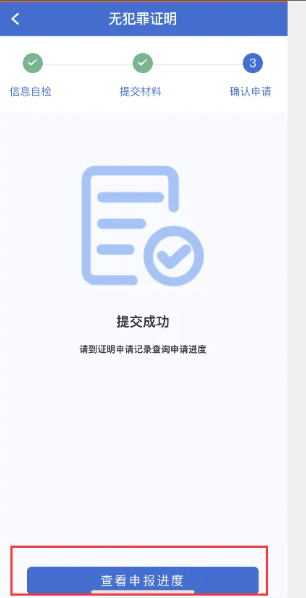 ⑤提交成功后可点击“查看申报进度”