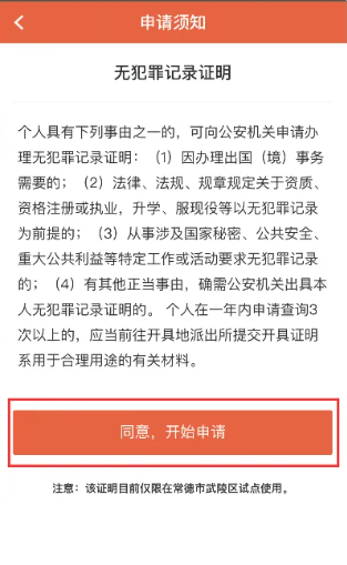 ②点击“无犯罪记录证明”,进入申请须知内容页面,开始申请