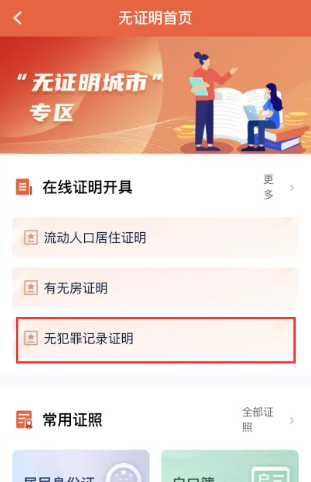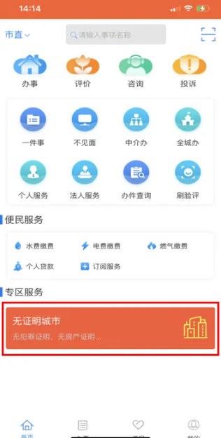 ①打开“我的常德”APP,点击“政务”-“无证明城市”