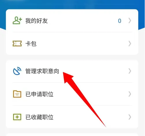 进入我的页面,点击管理求职意向选项。
