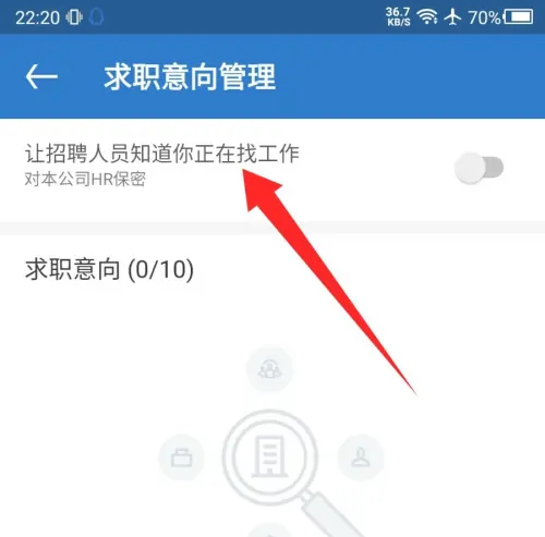 点击让招聘人员知道你正在找工作选项,开启求职状态。