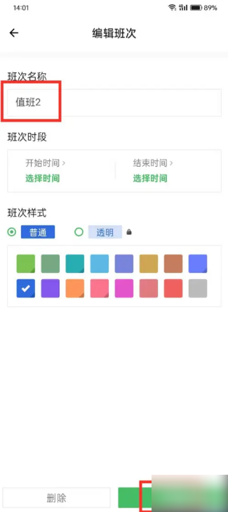 第三步:进入编辑班次页面,输入新名称,点击【保存】即可。
