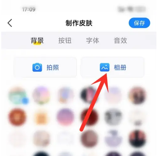 进入自定义皮肤页,点击“相册”图标。
