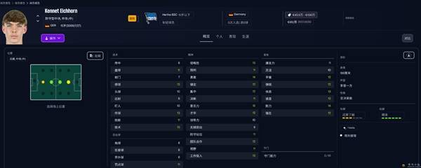 AMR/ST,哈萨克斯坦,16岁,已经确定年满18岁后加盟切尔西,哈萨克斯坦国家队最年轻的出场球员,开档属性就能在中游球队踢替补。