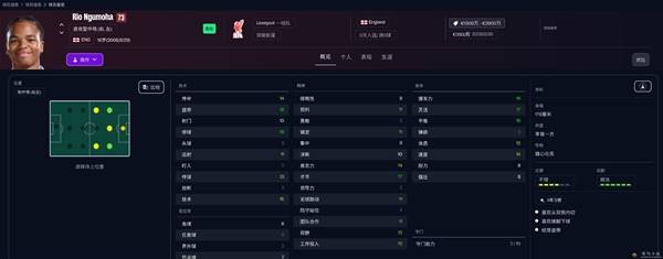 AML,英格兰,16岁,在利物浦英超首秀绝杀纽卡,一球成名,开档盘带就有18,技术15,停球16,才华17,速度14,爆发16,灵活17,平衡16,完美,可惜挖不走。