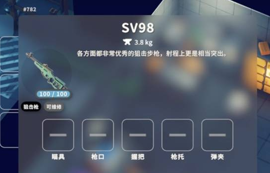这把狙击枪太离谱,连枪口都没有。伤害仅 22,和 sv98 比起来,各项属性全面被碾压,也就射程能看。