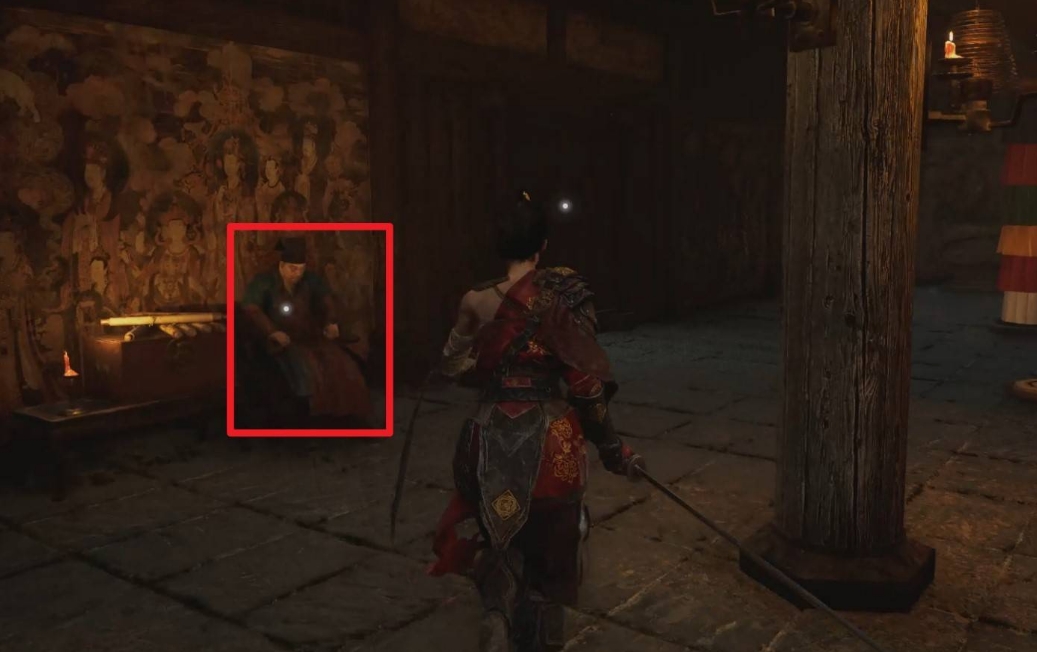 第一次出现在【含光禅院】的神龛左边,面对神龛与左边躺着的吴刚对话,但这里还无法解锁商店功能。
