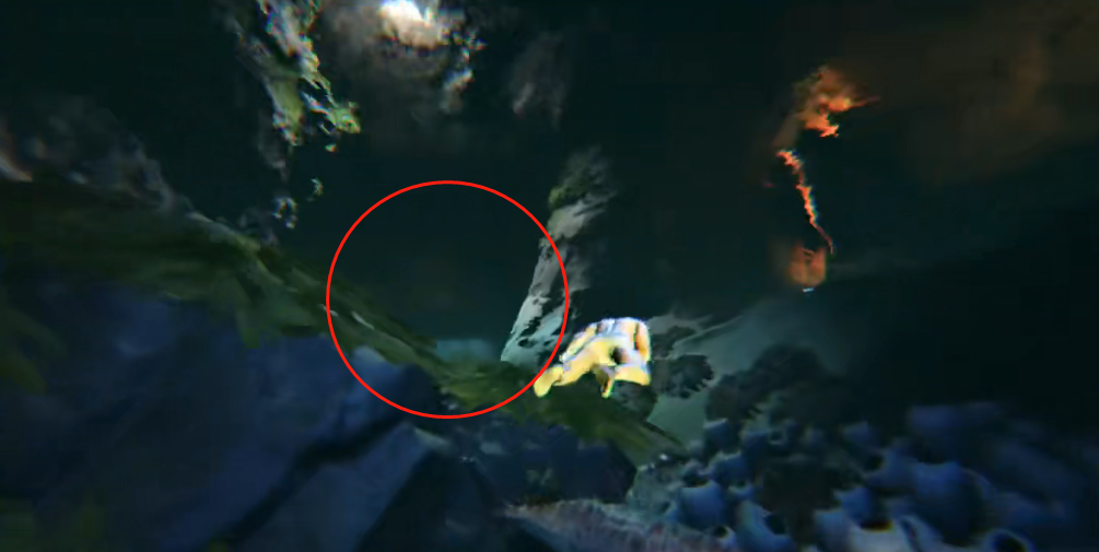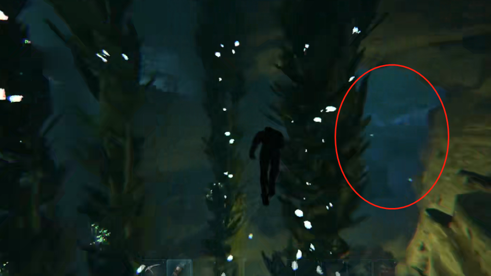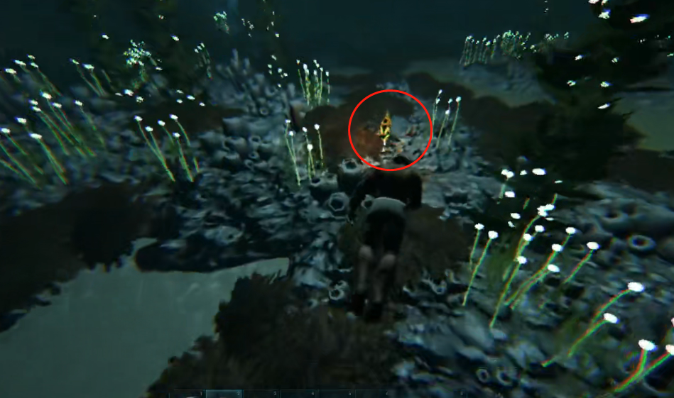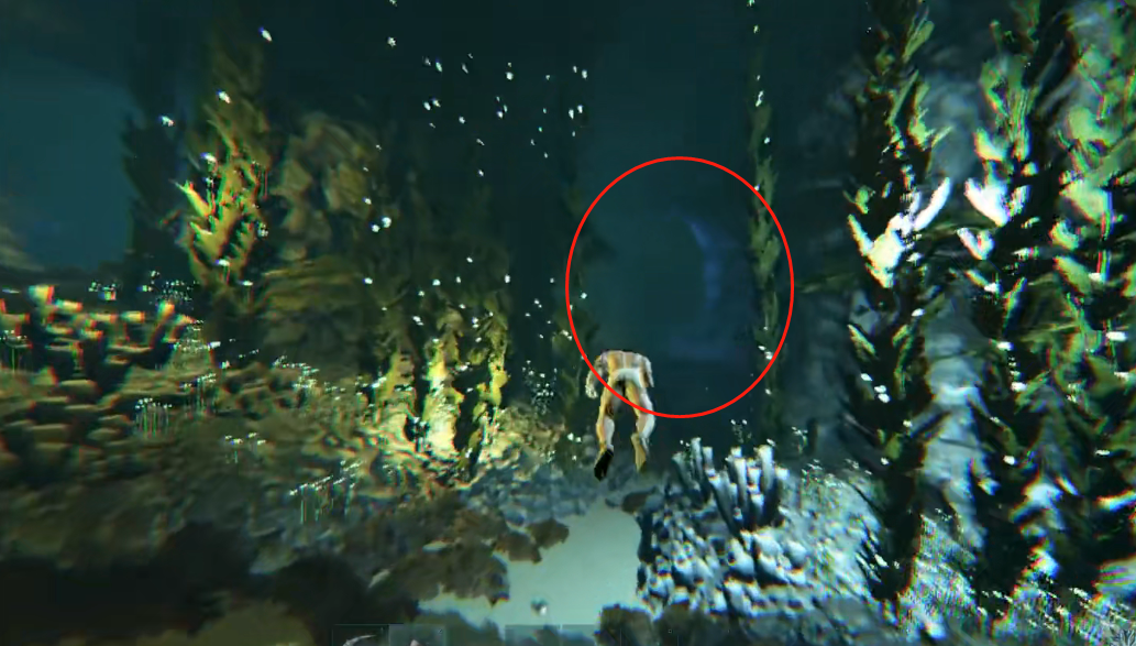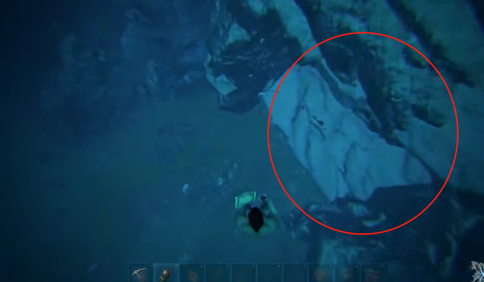 1、进入洞穴后先一直往前游,到达如图所示位置时走圈出来的这个洞。