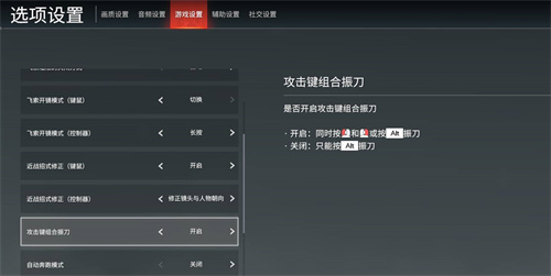1.【永劫无间】永劫无间取消【左右键振刀】只需要在【设置】-【选项设置】-【游戏设置】中,将【攻击键组合振刀】选项设置为【关闭】状态,即可取消左右键振刀。