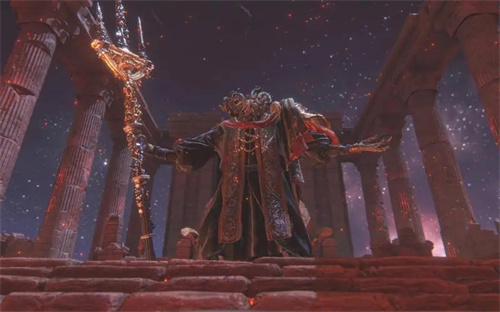 9、在「王朝灵庙(中段)」赐福点旁,找到地面红色符文,入侵白面具梵雷,击杀后返回原世界,与躺在地上的梵雷对话,可以获得武器「梵雷的花束」、「溃烂血指x6」。
