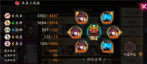 SP三尾狐 网切 攻攻爆 速度>130速 输出指标