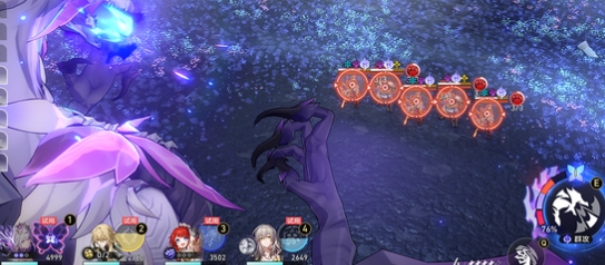 召唤死龙后,一直喷到自爆即可。2个辅助全程普攻,罗刹和遐蝶用战技,能正好召唤3次死龙