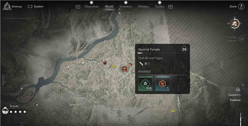 本篇为大家分享刺客信条影大和地区如意轮寺的失落的卷页的收集位置,如意轮寺位于吉野,这里一共有3个失落的卷页。