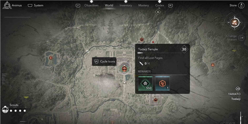本篇为大家分享刺客信条影大和地区东大寺的失落的卷页的收集位置,东大寺位于镰仓峡,这里一共有4个失落的卷页。