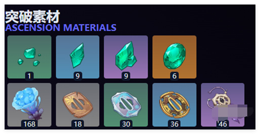 120000摩拉、自在松石6个、谜土的护符20个、海灵芝60个、名刀镡24个。
