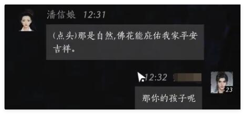 玩家:你可知你的女儿在受苦。(点头)那是自然,佛花能庇佑我家平安吉祥。