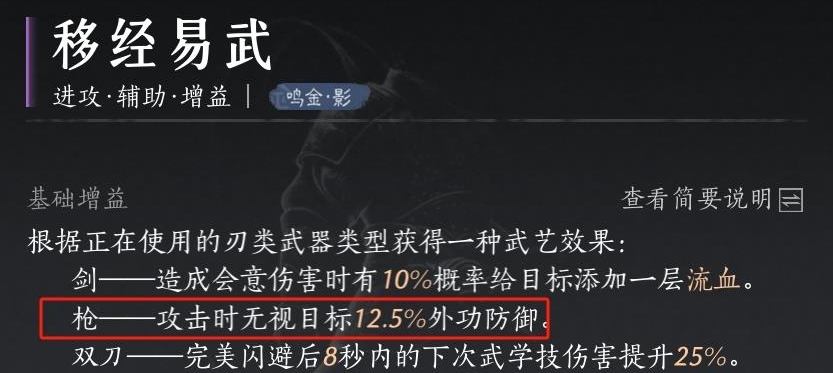 心法选择二,移经易武,枪12.5%的攻击穿透
