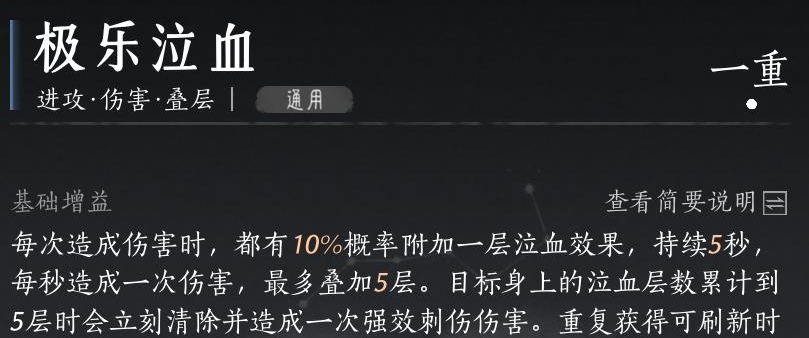 心法选择三,极乐泣血,超高频攻击配合泣血能造成大量刺伤