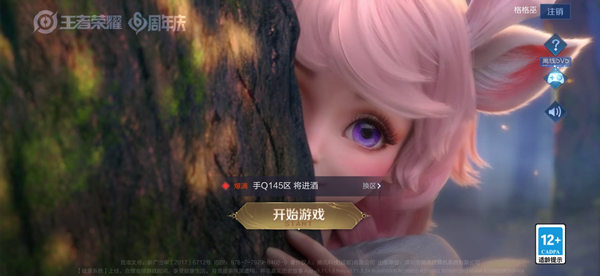 1、打开王者荣耀,选好大区后点击开始游戏按钮。