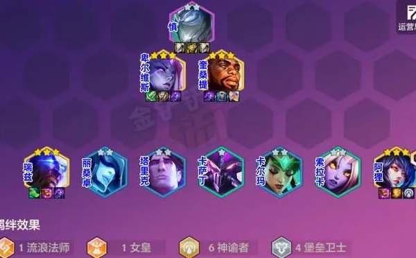 也可以采用另一套阵容,如下图所示是神谕阿狸,需要开出6神谕者,瑞兹和阿狸都是核心输出。通过神谕者羁绊赋予阿狸高回蓝,可以更快的释放技能。