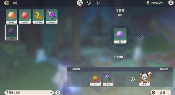 3、接着我们来到合成台,用香幸果和须弥蔷薇合成鱼饵。