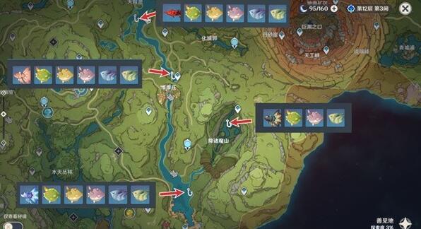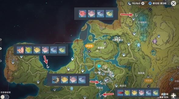 5、最后就是如图所示的钓鱼点位一览了,有个钓鱼点位重复了,不过问题不大。