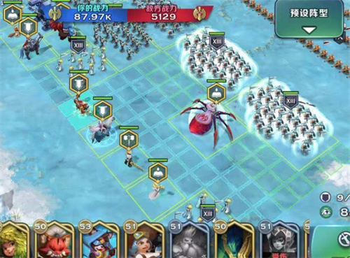 这个是越万神开城阵容,左边空位龟右边空位蜘蛛,记得艾莲娜用好撤退技能很容易集火。基本跟普通开城一样,但是这个阵容因为没车打的墙皮很少,但是牧师的奶却能帮忙把这个血量问题补回来。