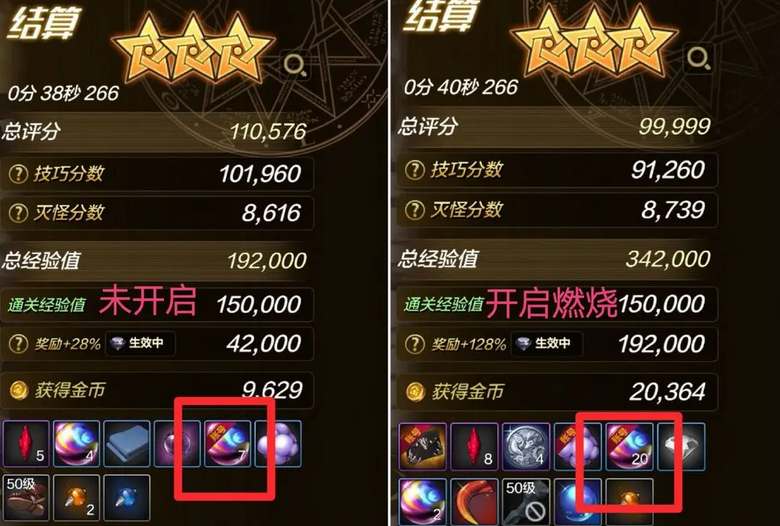 燃烧疲劳值可提高疲劳消耗速度100%,同时提高地下城道具掉落100%