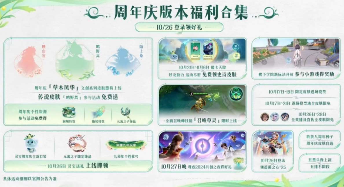 除了时光种子的奖励领取之外,今年游戏内还有不少其他的活动,周年庆当天登录游戏可以领取全新灵宝套装、收获时光种子获得往年周年庆皮肤自选礼包、专属的元流之子限定饰品、9周年庆的专属个性称号等奖励。