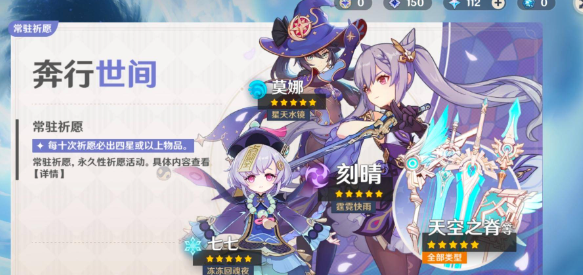这个是可以让我们去常驻卡池里面去抽,这里面的角色或者说装备比较的固定,如果大家想要自己获取一个一直想要培养的角色就可以在里面抽,基本上这里面如果想要抽中的话难度还是比较大的,而且一般都是前期比较热门的一些角色,如果大家想要喜欢里面角色的话那么就去购买下了。