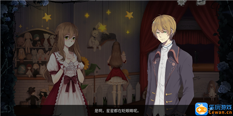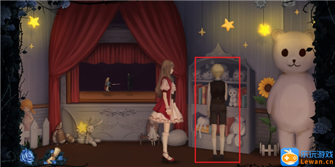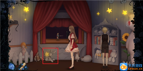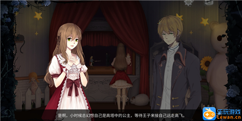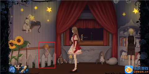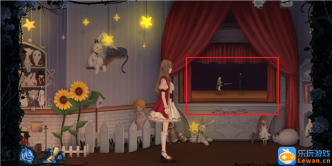 看完“孤独的少女”的对话后,我们继续往右走,来到一个小型的木偶剧舞台,点击舞台,触发对话“王子与公主的童话”。