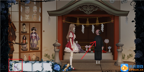 拿到怀表后,我们就可以点击之前在“和式人偶馆”内我们无法点击的那个“小巧的木偶公主”,就在神社的左下方。