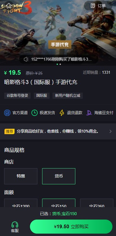 暗影格斗3国际服代充教程