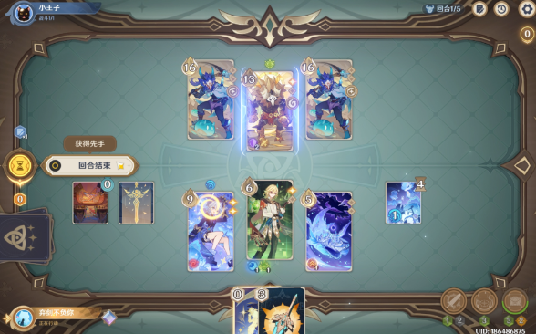 回合1骰子需求:水骰*5+草骰*2,投掷阶段找水、草骰子即可。