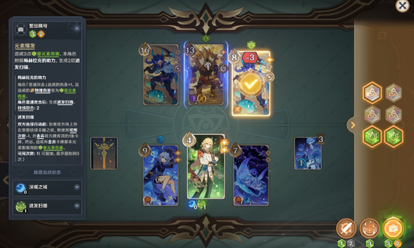注意:吞星之鲸在释放元素战技后会舍弃一张手牌,因此如果需要用到手牌进行元素调和需在角色行动前进行!