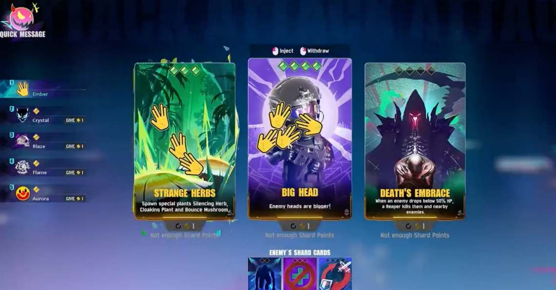 《FragPunk》这款游戏融合了FPS元素和卡牌机制,玩家可以选择英雄角色、调整武器装备,搭配卡牌改变战斗规则从而获取胜利。游戏的节奏比较快,可玩性也比较高,上手难度适中,对于apex、ow等fps游戏的玩家来说上手会相对容易一些。