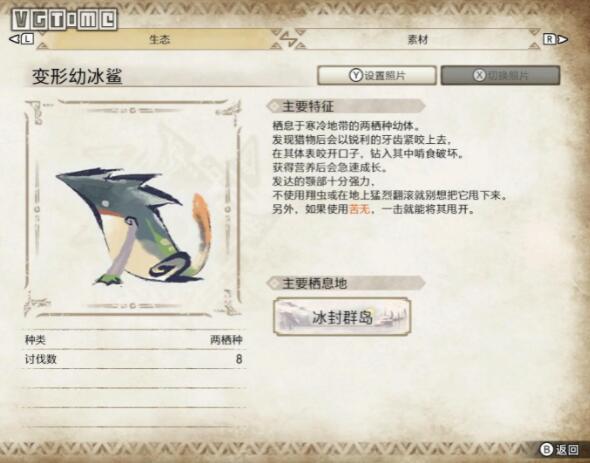 解锁条件:解锁条件是在冰封群岛讨伐 8 头变形幼冰鲨。