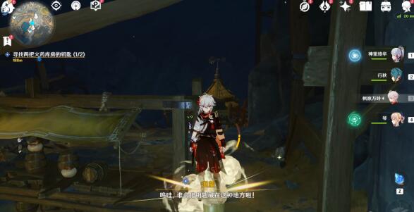 1、首先我们对话瑾武即可触发任务,接着寻找两把火药库房的钥匙。