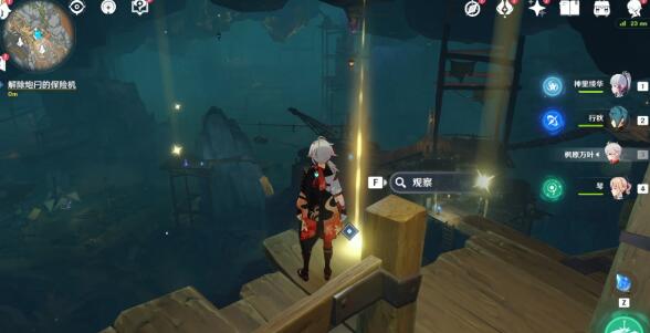 5、接着我们前往巨渊主矿区传送锚点,来到任务引导处桌子阅读安全距离爆破装置·信号指南,在桌子附近的光点观察远处三个灯桩位置,按照指南所说方法调整三处灯状即可。低处的灯桩要调整成高频闪烁,中等高度处的灯桩要调整成低频闪烁,最高处的灯桩要调整成低频闪烁。