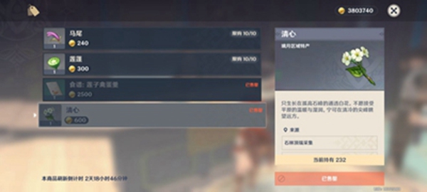 以上就是原神中清心的购买方法了,想要了解更多游戏资讯和攻略的小伙伴记得要多多关注我们哦。