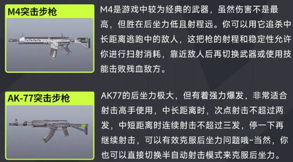 M16突击步枪在默认状态下为三连发,但它的稳定性极强,开镜点射以达到最高伤害,近战可尝试腰射,它的散射相对来说比较小,在中远距离使用三连发可以打出高精度射击。