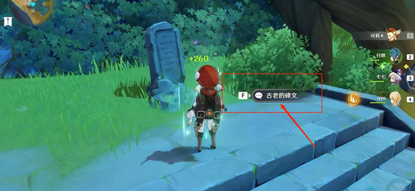 4、靠近石碑点击古老的碑文,交互之后即可触发循仙踪兮天遒。