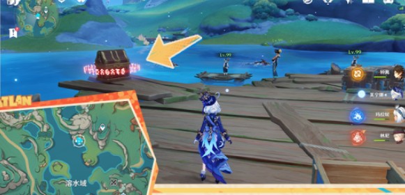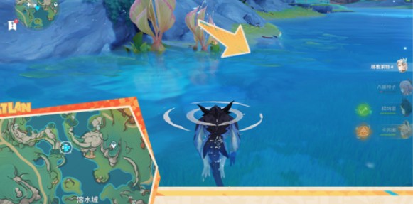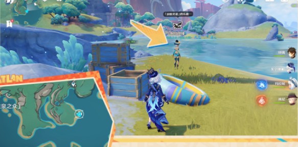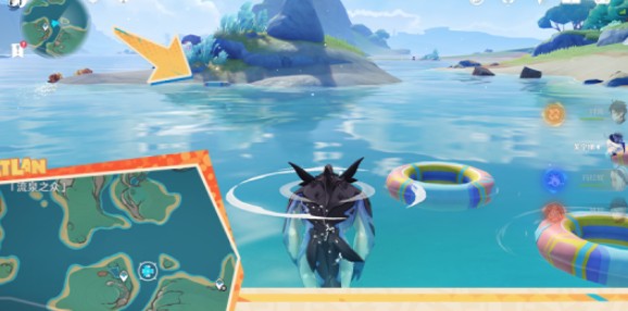 6、前往【流泉之众】东边获取岸边的游泳圈,到下图所示的游泳圈旁得到A级评分即可得到宝箱。