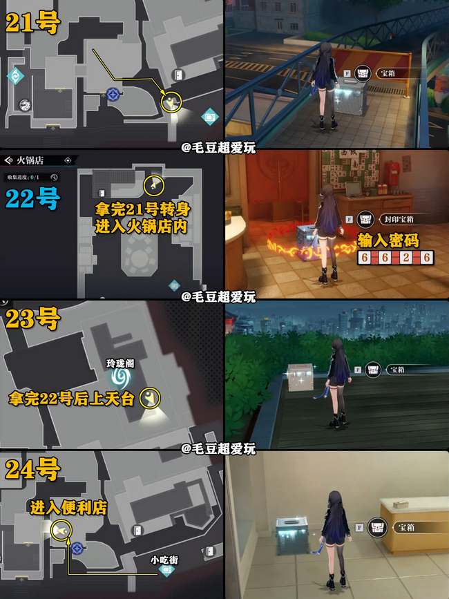 3、地图上有一些宝箱是需要收集密码线索输入密码才能开启的,比如上图中火锅店的宝箱密码就是【6626】。这个任务线索是通过《笼律鸟》系列任务全部完成后才能获取的,助理导演4星后解锁昼夜功能,切换时间在“四时相馆”门口打太极的大爷对话获得数字线索。