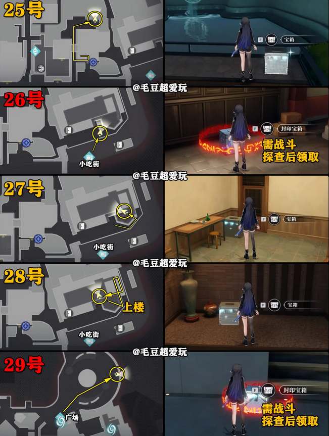 1、中浦城区内地图左上角的宝箱数量为29,分布位置如下图所示。