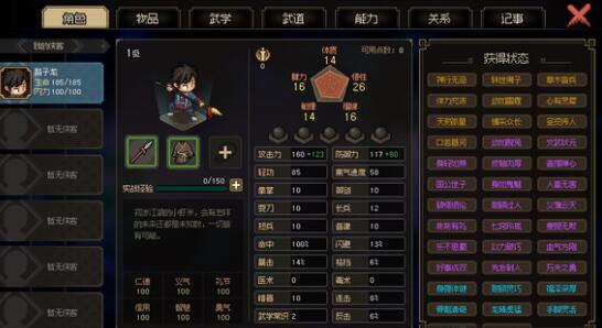开局属性:臂力: 16悟性: 24体质: 14敏捷: 14福缘: 16