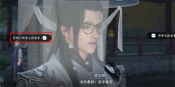 3、之后他会询问玩家灯写谁的名字,此时选框选择写师门所有人的名字;