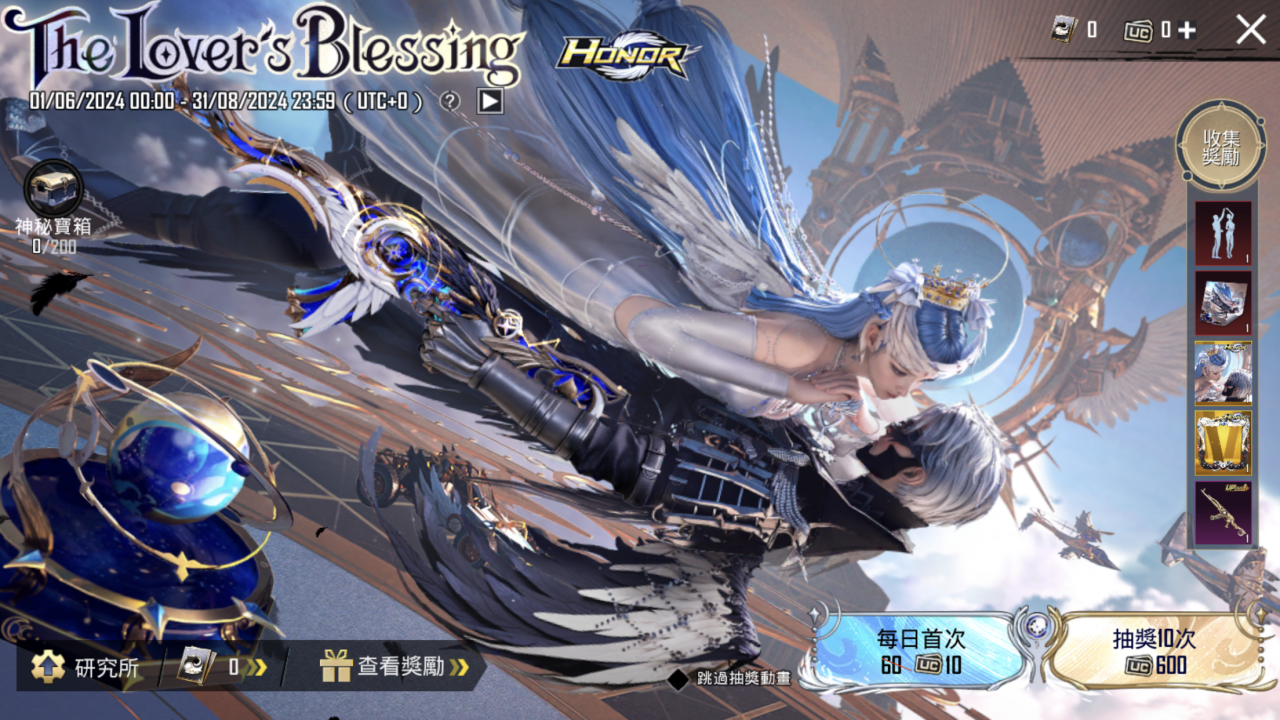 活动界面消耗UC进行抽奖,即有机会获得神羽恋人套装。每日首次单抽仅需10UC,抽奖十次花费600UC。